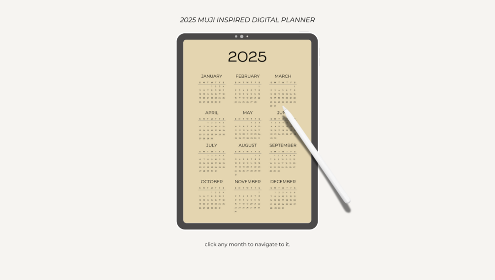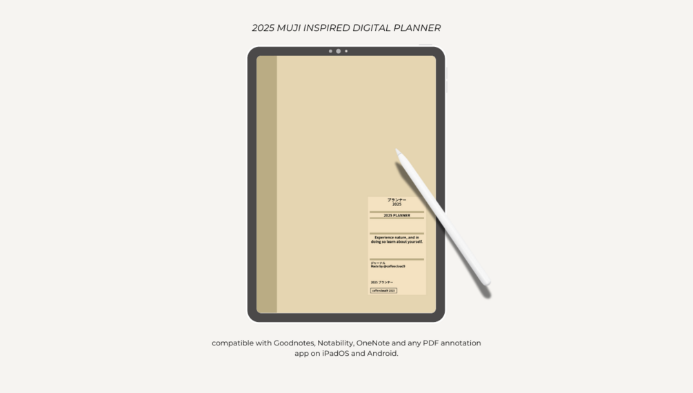 Muji inspired PDF planner that works with any PDF annotation apps and the linked tabs will function in Goodnotes/Notability in iPad and Android tablets.š
